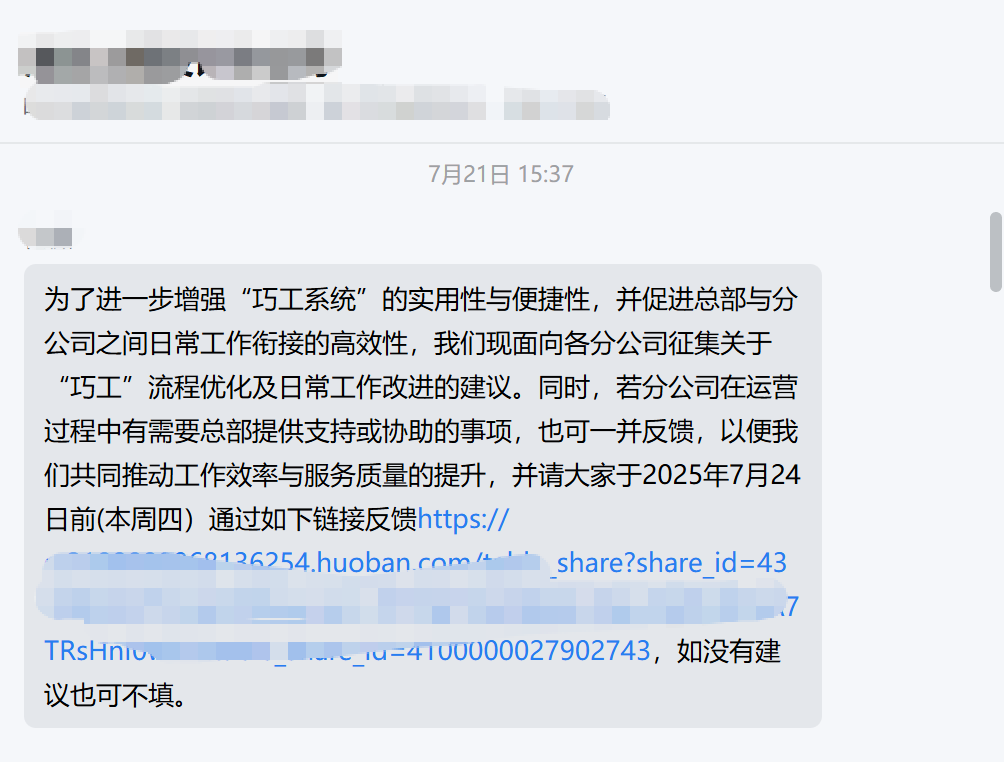 2025年7月,總部面向全國各城市合伙人團隊開展了“巧工系統意見征集”活動,得到了大家的積極響應和熱情參與。大家結合自身實際使用場景,提出了大量具有建設性的意見與建議。這些來自一線的真實反饋,不僅反映了當前系統在使用過程中的痛點與難點,更蘊含著對功能優化、流程簡化、效率提升的深切期待。