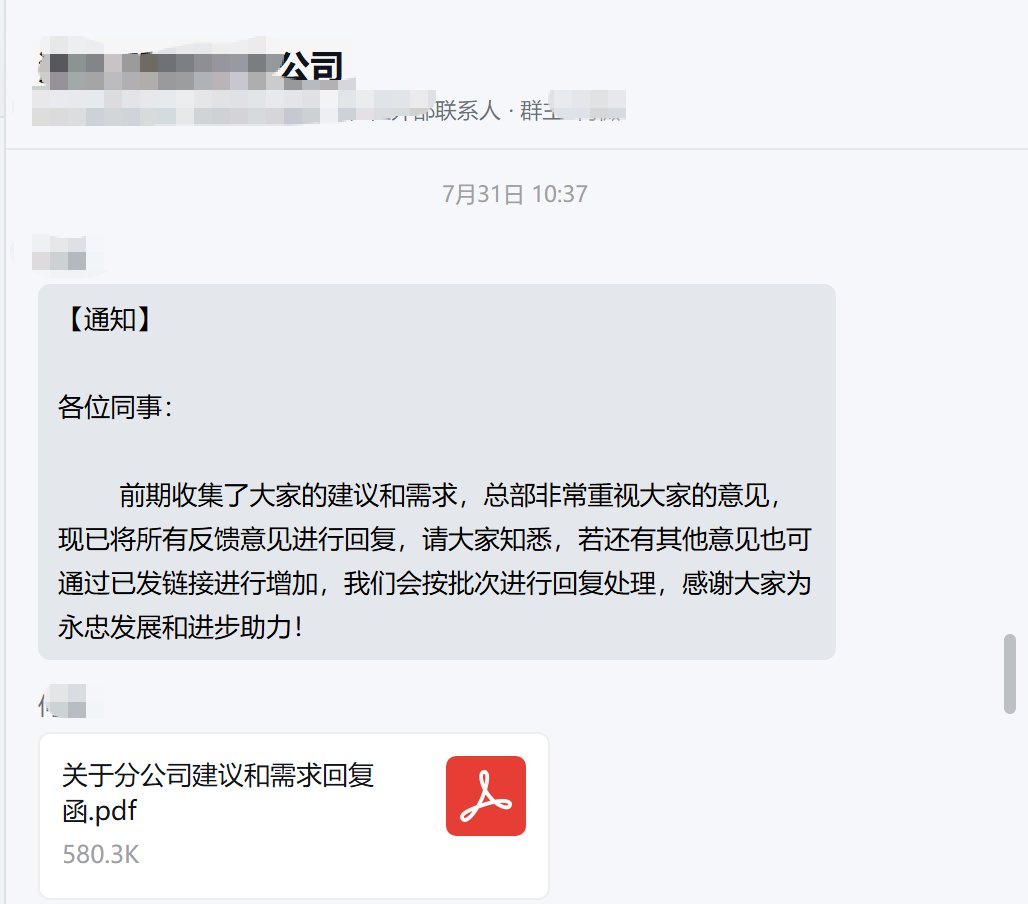 在收到全部意見后,總部迅速組織專項小組,對所有問題進行了系統統計、科學歸類,并逐一作出詳細回復至分公司。